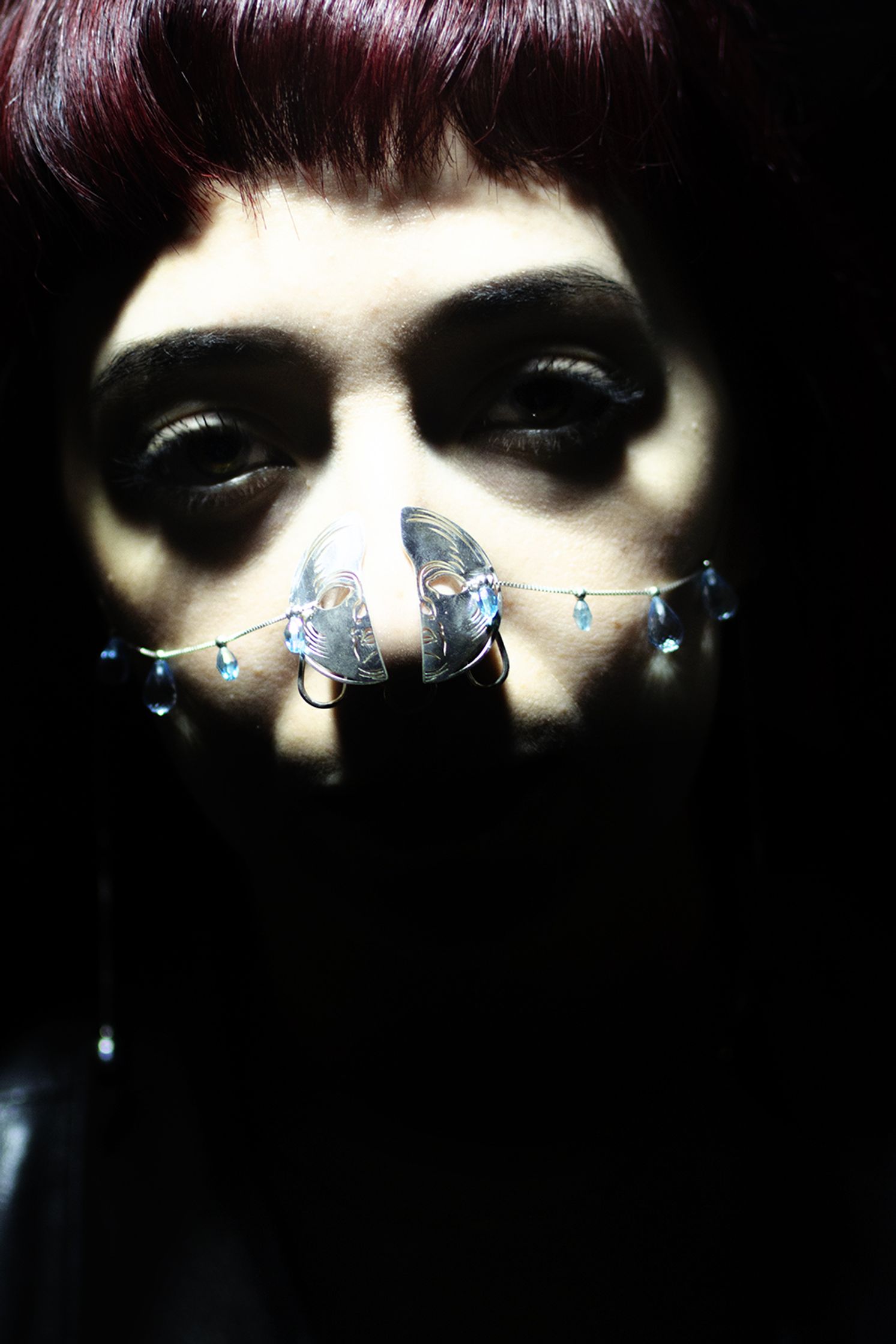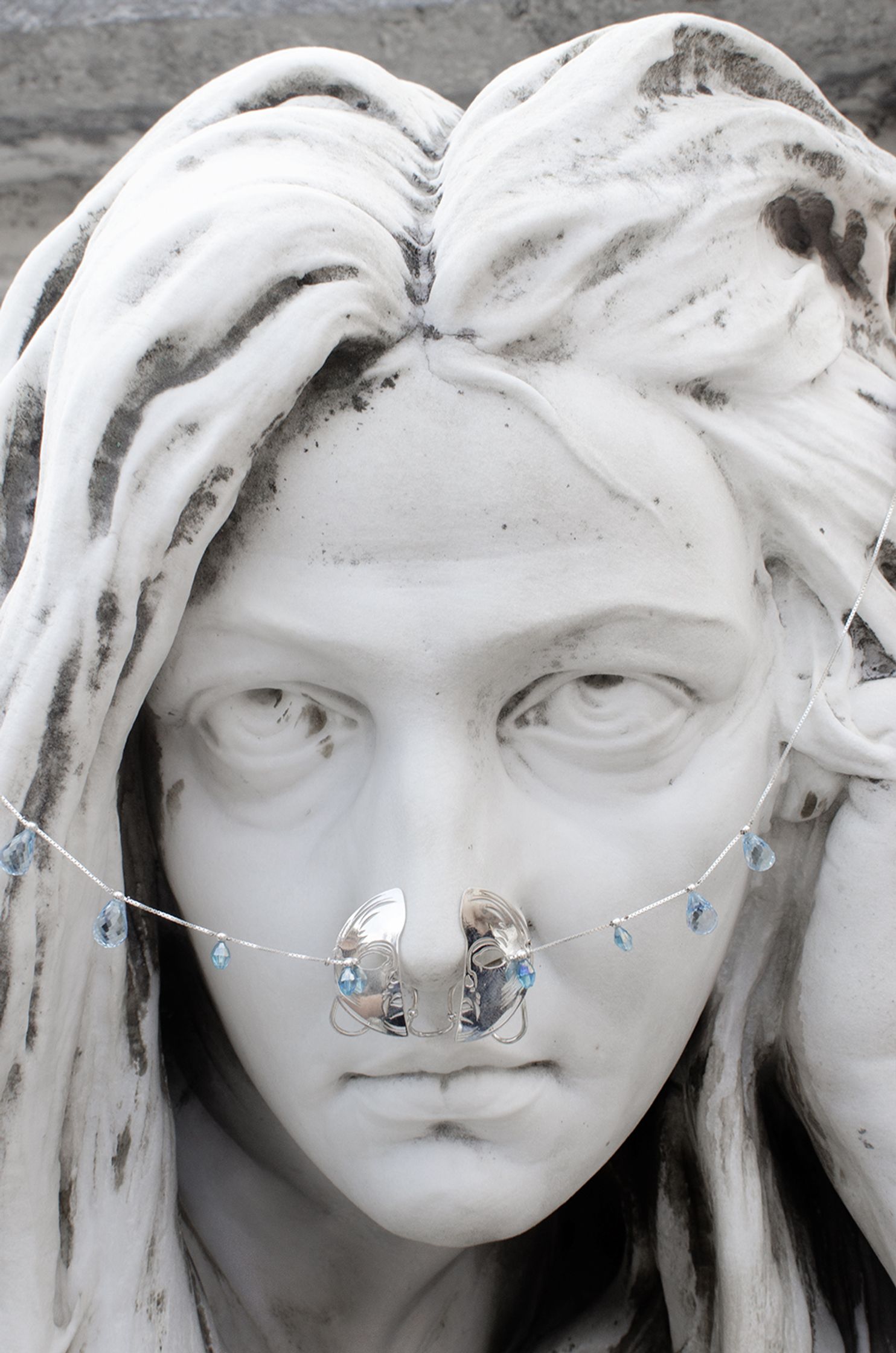 LA LUNA : nose/face jewel representing the waning moon. It is made in 925 silver with rhinestones.